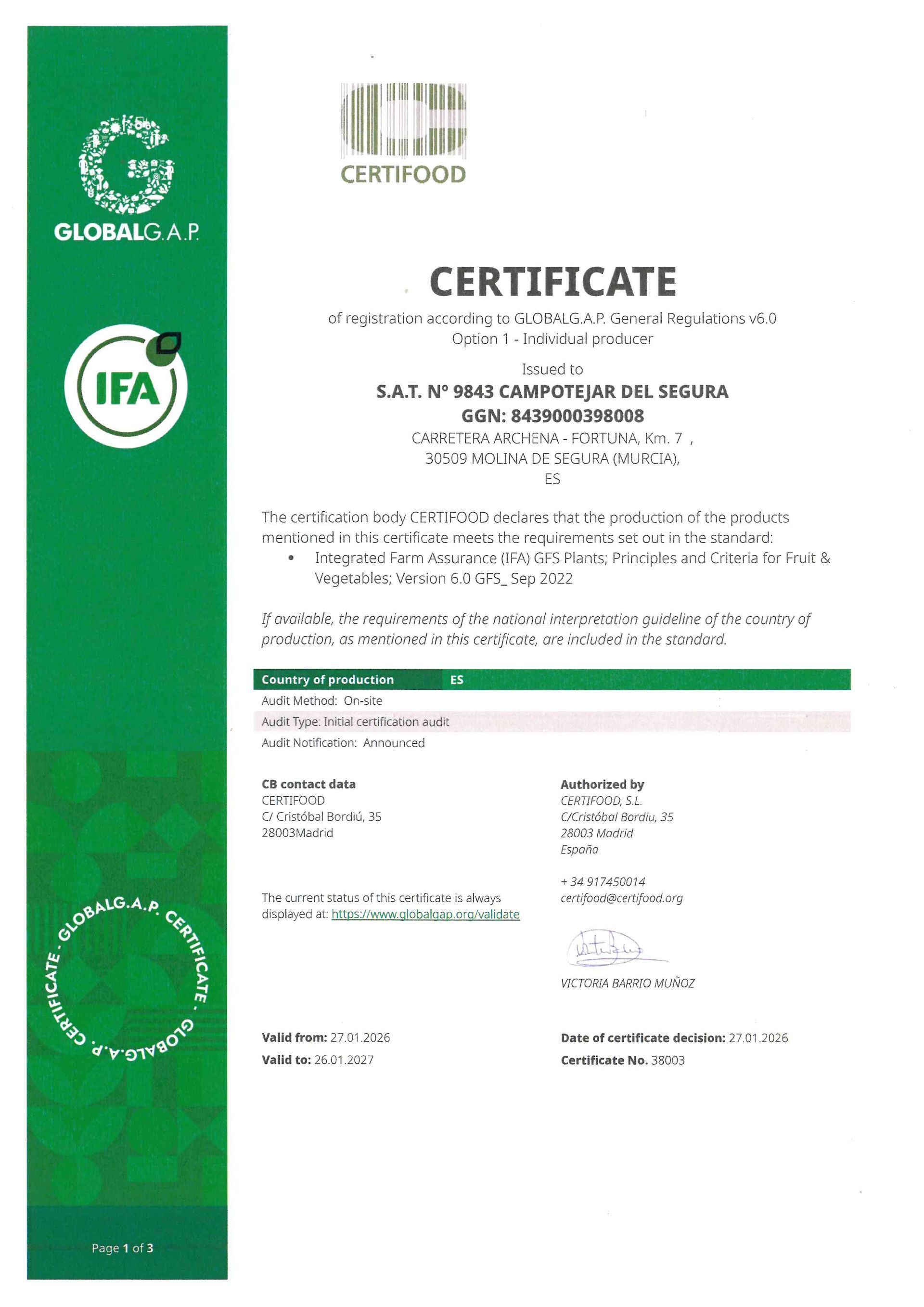 El objetivo de la certificación es formar parte de la verificación de las Buenas Practicas en toda la cadena de producción.